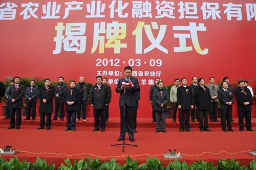 省政府、省財(cái)政廳、省金融辦、省農(nóng)業(yè)廳、銀行系統(tǒng)領(lǐng)導(dǎo)以及各市分管農(nóng)業(yè)產(chǎn)業(yè)化工作的負(fù)責(zé)人;陜西省農(nóng)業(yè)產(chǎn)業(yè)化國(guó)家級(jí)龍頭企業(yè)負(fù)責(zé)人;陜西省農(nóng)業(yè)產(chǎn)業(yè)化龍頭企業(yè)協(xié)會(huì)理事單位負(fù)責(zé)同志一起見(jiàn)證了陜西省農(nóng)業(yè)產(chǎn)業(yè)化融資擔(dān)保公司成立揭牌的隆重時(shí)刻。