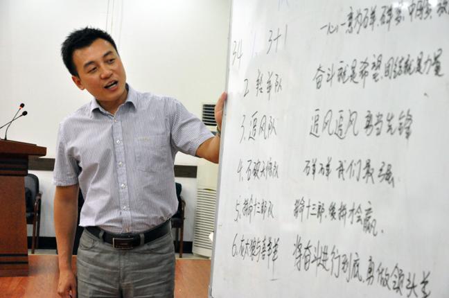 集團(tuán)人力資源部經(jīng)理周博寧做了培訓(xùn)前的熱身