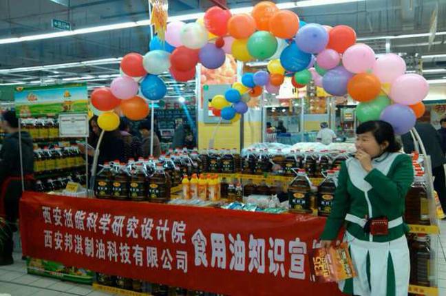 這次推廣,油脂產(chǎn)業(yè)以邦淇獲“2013陜西顧客滿意度測評食用油行業(yè)最佳顧客滿意獎(jiǎng)”殊榮為契機(jī),高度重視、精心組織、全員參與,以“您的健康、我的牽掛”為主題,貫穿“誠信、責(zé)任、擔(dān)當(dāng)”;體現(xiàn)“綠色、安全、科普”,為更好指導(dǎo)科學(xué)消費(fèi),特意邀請石羊油脂產(chǎn)業(yè)戰(zhàn)略合作伙伴——西安油脂科學(xué)研究設(shè)計(jì)院有關(guān)專家全程參與西安的全部活動(dòng),接受消費(fèi)者現(xiàn)場咨詢、舉辦油品知識講座、指導(dǎo)食用油鑒別常識,重點(diǎn)是結(jié)合石羊油品安全、綠色、健康的價(jià)值理念進(jìn)行宣講,西安KA分別在華潤渭濱路店、人人樂玉祥門店舉行,兩天達(dá)成銷量180桶;社區(qū)分別在大明宮西鐵小區(qū)、鳳城六路菁華名門、乾唐華府舉行,兩天實(shí)現(xiàn)銷售100余桶,通過空桶優(yōu)惠、贈(zèng)送防霧霾口罩等形式,對邦淇特別是石羊品牌的傳播意義深遠(yuǎn)。