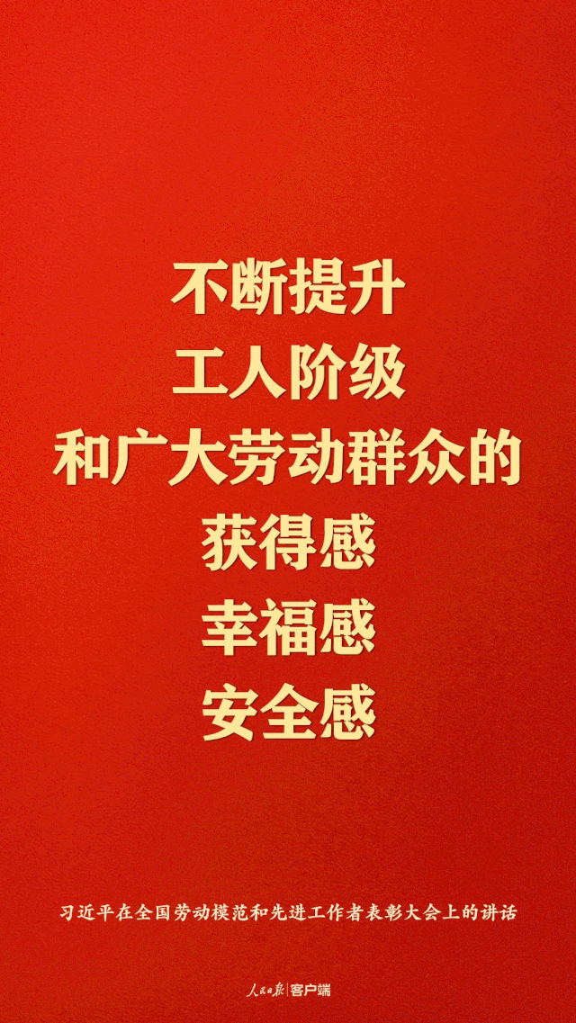 光榮屬于勞動者,幸福屬于勞動者。社會主義是干出來的,新時代是奮斗出來的。勞動模范是民族的精英、人民的楷模,是共和國的功臣。我國是人民當家作主的社會主義國家,黨和國家始終堅持全心全意依靠工人階級方針,始終高度重視工人階級和廣大勞動群眾在黨和國家事業(yè)發(fā)展中的重要地位,始終高度重視發(fā)揮勞動模范和先進工作者的重要作用。立足新發(fā)展階段,貫徹新發(fā)展理念,構建新發(fā)展格局,推動高質(zhì)量發(fā)展,必須緊緊依靠工人階級和廣大勞動群眾。我國工人階級和廣大勞動群眾要更加緊密地團結在黨中央周圍,勤于創(chuàng)造、勇于奮斗,努力在全面建設社會主義現(xiàn)代化國家新征程上創(chuàng)造新的時代輝煌、鑄就新的歷史偉業(yè)。——習近平