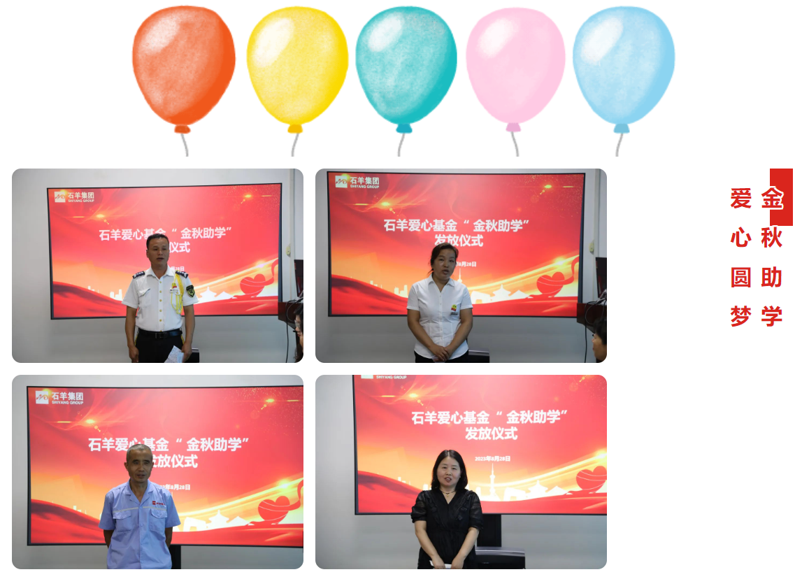 金秋是收獲的季節(jié),也是高校學(xué)子的開學(xué)季。在莘莘學(xué)子即將前往新的征程之際,公司開展“金秋助學(xué)”活動(dòng),為石羊生態(tài)圈的子女夢(mèng)想架起愛的橋梁,讓生態(tài)圈更多的人感受到大家庭的溫暖和力量,持續(xù)傳承有愛有溫度的石羊愛心文化。