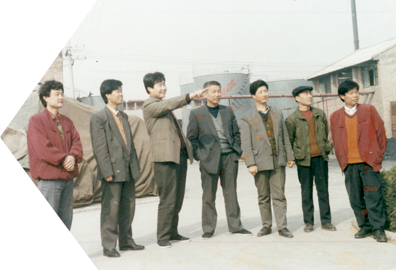 1994年,魏存成同志與創(chuàng)業(yè)初期的經(jīng)營(yíng)管理團(tuán)隊(duì)。